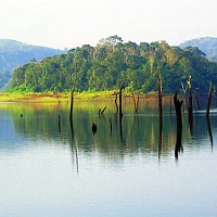 Thekkady is located about 257 km (160 mi) from Trivandrum, 114 km from Madurai City and Madurai Airport, 145 km from Cochin International Airport and 114 km from Kottayam railway station. Thekkady is located near to Kerala-Tamil Nadu border. The sanctuary is famous for its dense evergreen, semi-evergreen, moist deciduous forests and savanna grass lands. It is home to herds of elephants, sambar, tigers, gaur, lion-tailed macaques and Nilgiri langurs. | ||